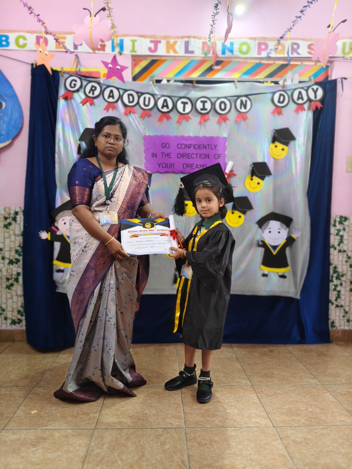 Rising buds pre school simply I can tell its a school of excellence.The staff ,principal every one encourages each and every student.They are very cooperative,friendly in nature. When coming to academic wise my child learnt a lot starting from alphabets to writing sentences.he has grown from holding pencil to reading and writing sentences communication also improved a lot. Learning hindi kannada starting from this age is also good.I highly recommend this school for toddlers. Thank you principal,teachers and whole team.